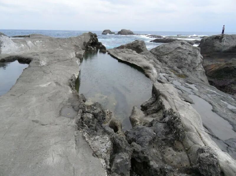 Thanks to the constant pounding of the waves, the sea-eroded rock platforms are riddled with potholes, varying in size and depth. Some even have smooth, rolling pebbles inside, and a few actually protrude from the ground, looking just like giant bathtubs. How cool is that?