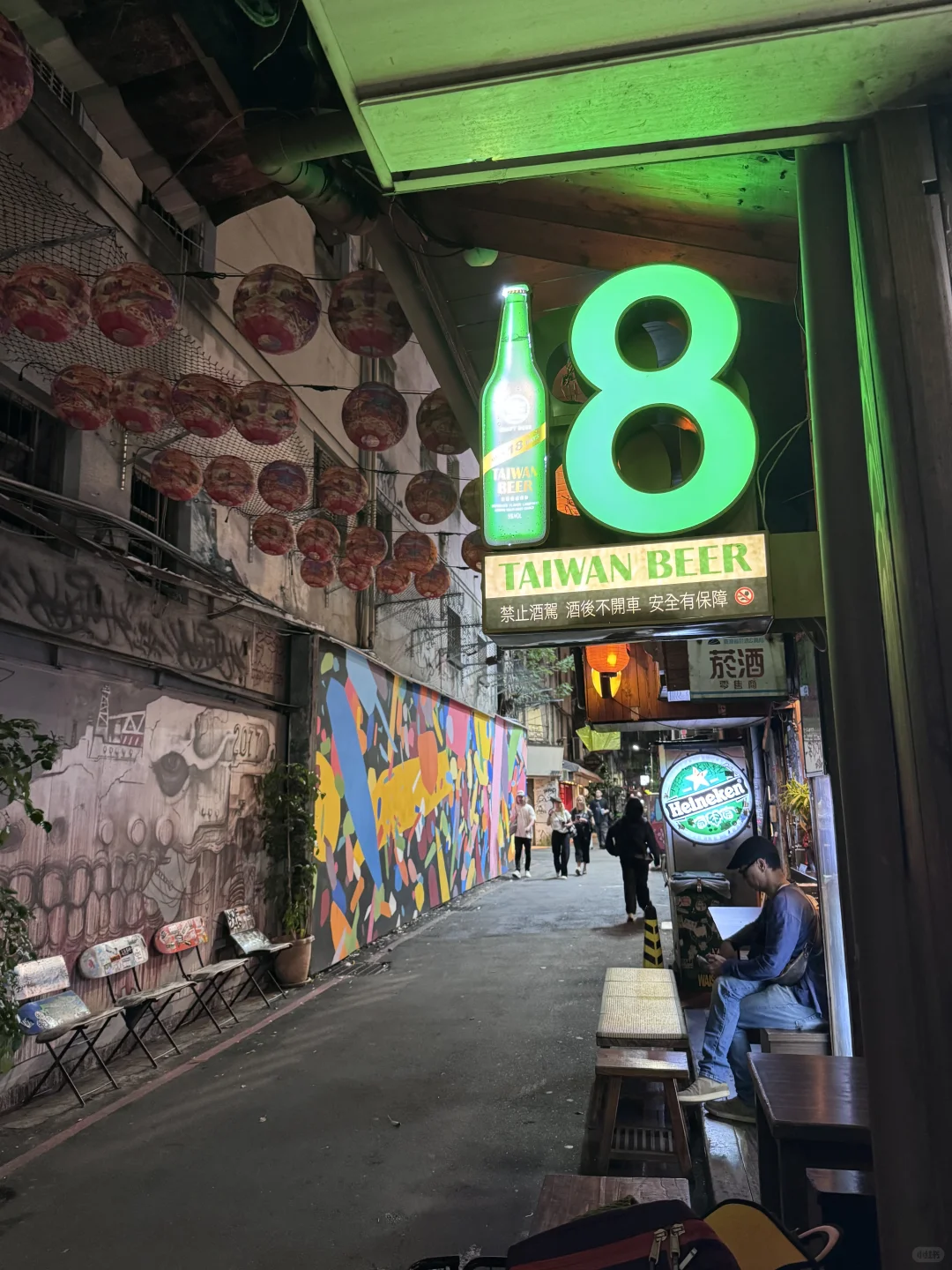 Vibrant street art and neon lights in Ximending Taipei
